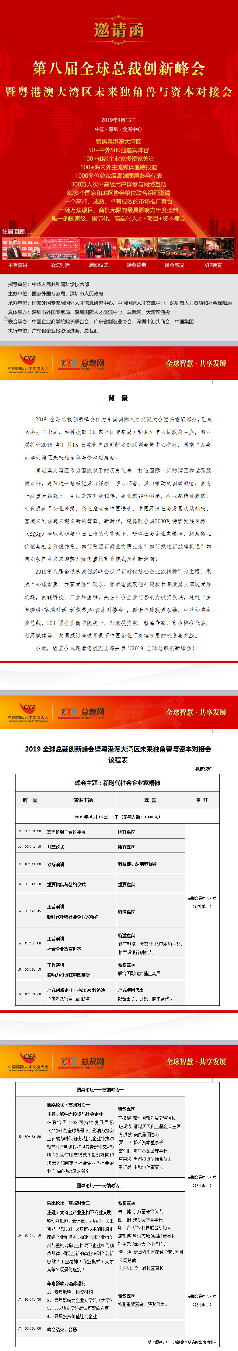 2019第八届全球总裁创新峰会(深圳)将于2019年4月15日 在深圳举行,此次峰会报名平台蟠桃会。